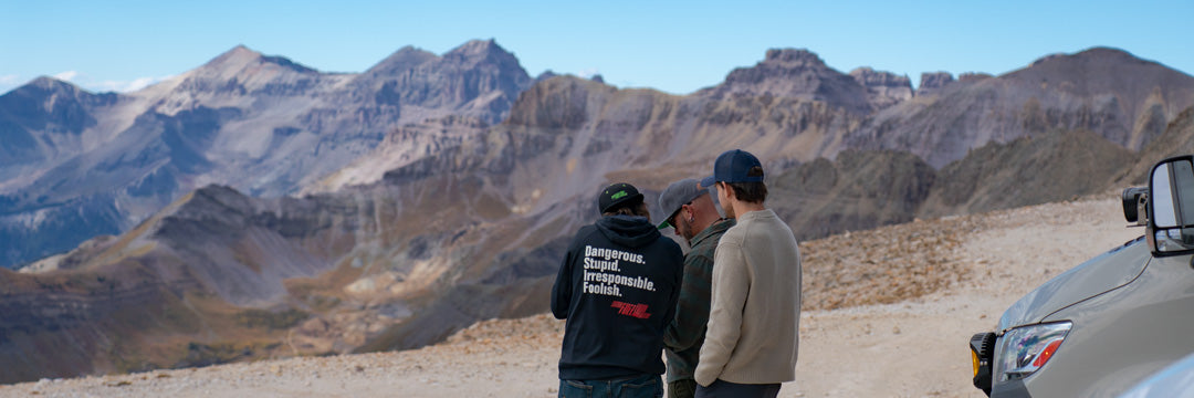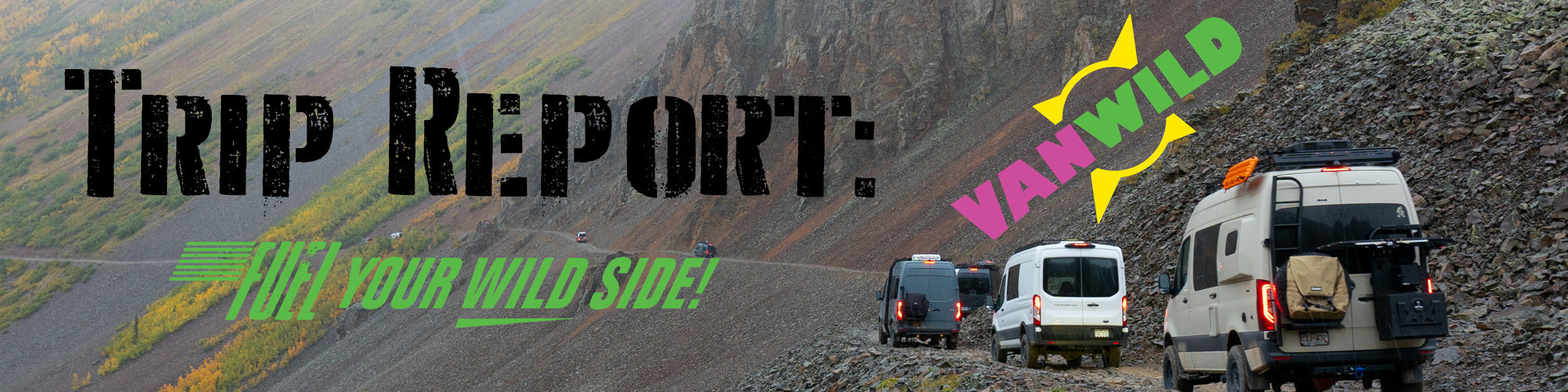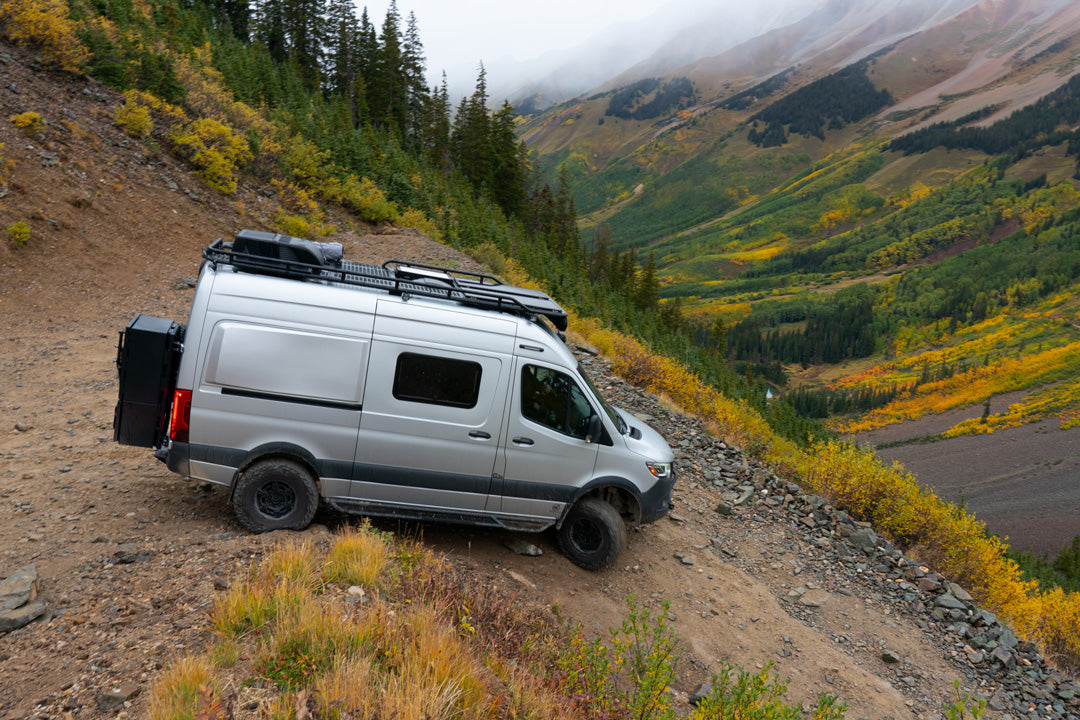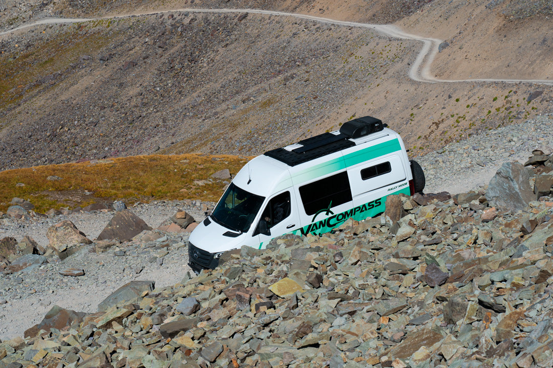 One might even say doing this pass in 4 motorhomes is a dangerous, stupid, irresponsible, and foolish idea. Undeterred by this consideration, we trudged onward and upward, keeping our vehicle's limitations in mind. One thing we all noticed is that around 12000 ft, the vans all felt very down on power. The onboard traction and power system safety nannies were clearly not happy with our decision, even stalling out on the most technical obstacles, which meant we were pulling cable. While trying to balance content creation, navigating the tricky parts of the trail, and the flow of traffic, we'd definitely burned more daylight than intended to get to this point.