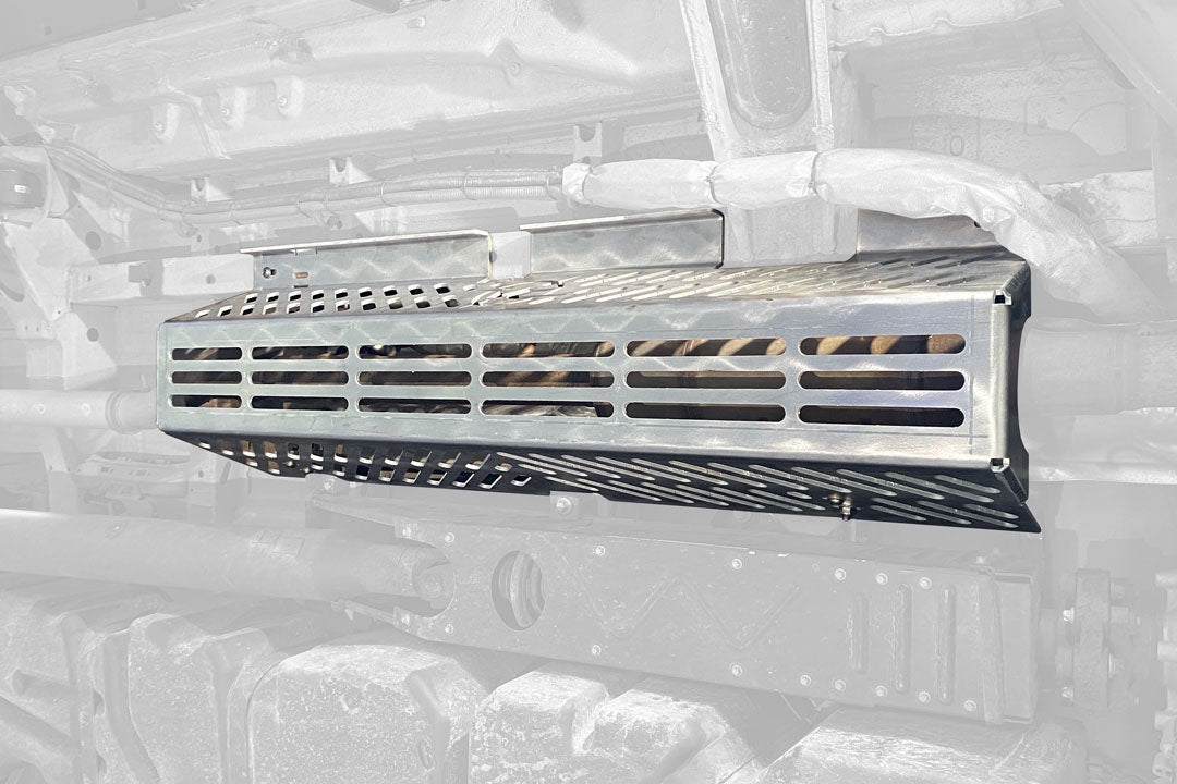Our catalytic converter anti-theft guard gets in the way of would be thieves with 1/4" thick formed aluminum and stainless tamper proof hardware. Due to is soft nature, aluminum is actually much harder on most tools like grinders and reciprocating saws, gumming up the blade and slowing down thieves looking to make a quick getaway. Numerous ventilation holes ensure ample airflow around hot exhaust components, and intelligently designed mounting brackets ensure ease of serviceability down the line.