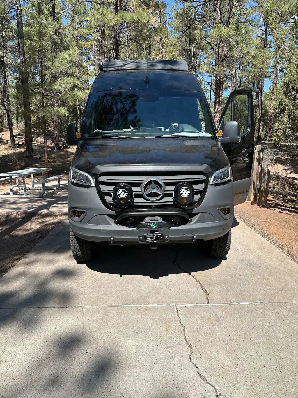 Extremely pleased with this front winch mount! Well designed, sturdy, yet lighter in weight than other winch mount bumpers. I had it installed at Owl Off-road. All MB safety systems and sensors intact with zero issues. I have not needed to use the winch yet, but have used the hitch plenty. Thank you VC for engineering an incredible product!