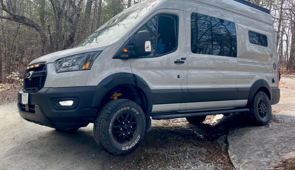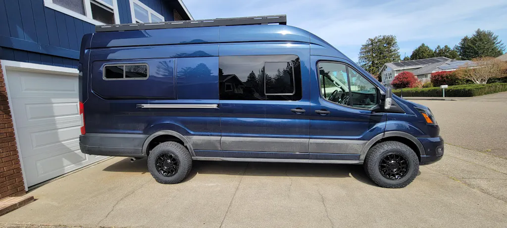 Install took me about 2 days, as I was taking my time. Be sure to watch the youtube videos from Explorist- very helpful. Also, I was able to fit 235/85/16 Cooper ST MAXX on my 2023 transit with stock wheels and the spacers from VC. There's just the tiniest bit of rub at full lock, but It will go away with time.